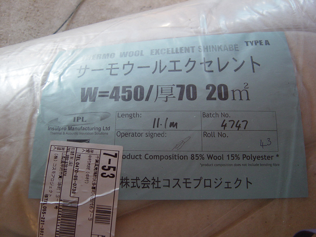 やっと 壁面に入れる断熱材 サーモウールが入荷しました。