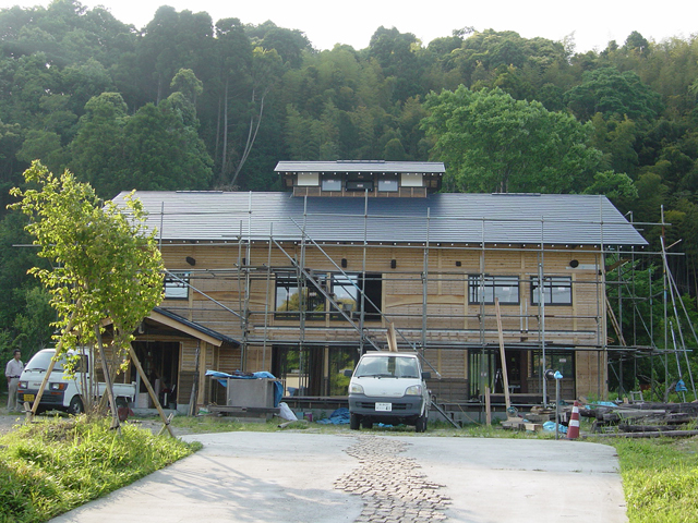 昨年8月 夏の真っ盛りに 蝉坊主のような日よけ帽をかぶり、(なんせ 炎天下 屋根がないところで 梁や柱を組んでいくわけです。)2階になる部分や屋根を組み付けるところから 梯子を使っての上り下りを 何回いや何十回の繰り返し 一言も弱音をはかずに黙々と作業を進めていったあの光景が 睦沢の真っ青な青空と共に思い出されます。