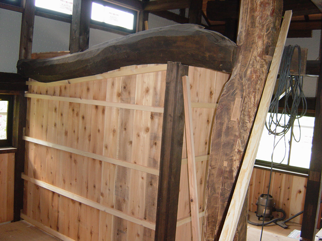 写真の背景に見える部分が横に板を張った様子です。