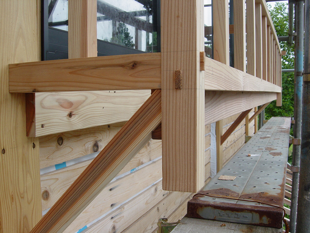 キャットウォークの存在は、土間からの見上げの雰囲気を重視したり 土間をパッシブソーラとして機能させることを考えると取り扱いの難しいものでしたが、ベランダをつくる事になったのが、建築工事が随分進行してからのことなので、キャットウォークをつくる事で、収めました。